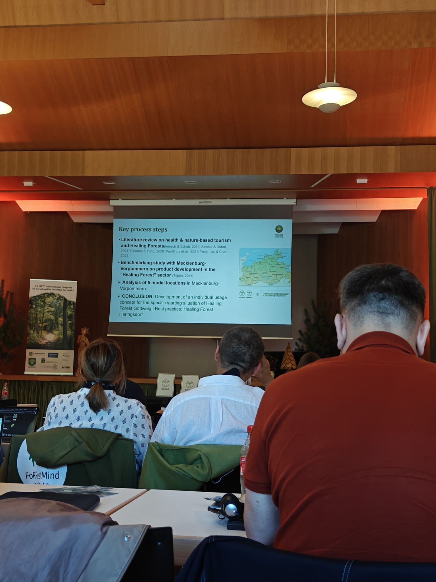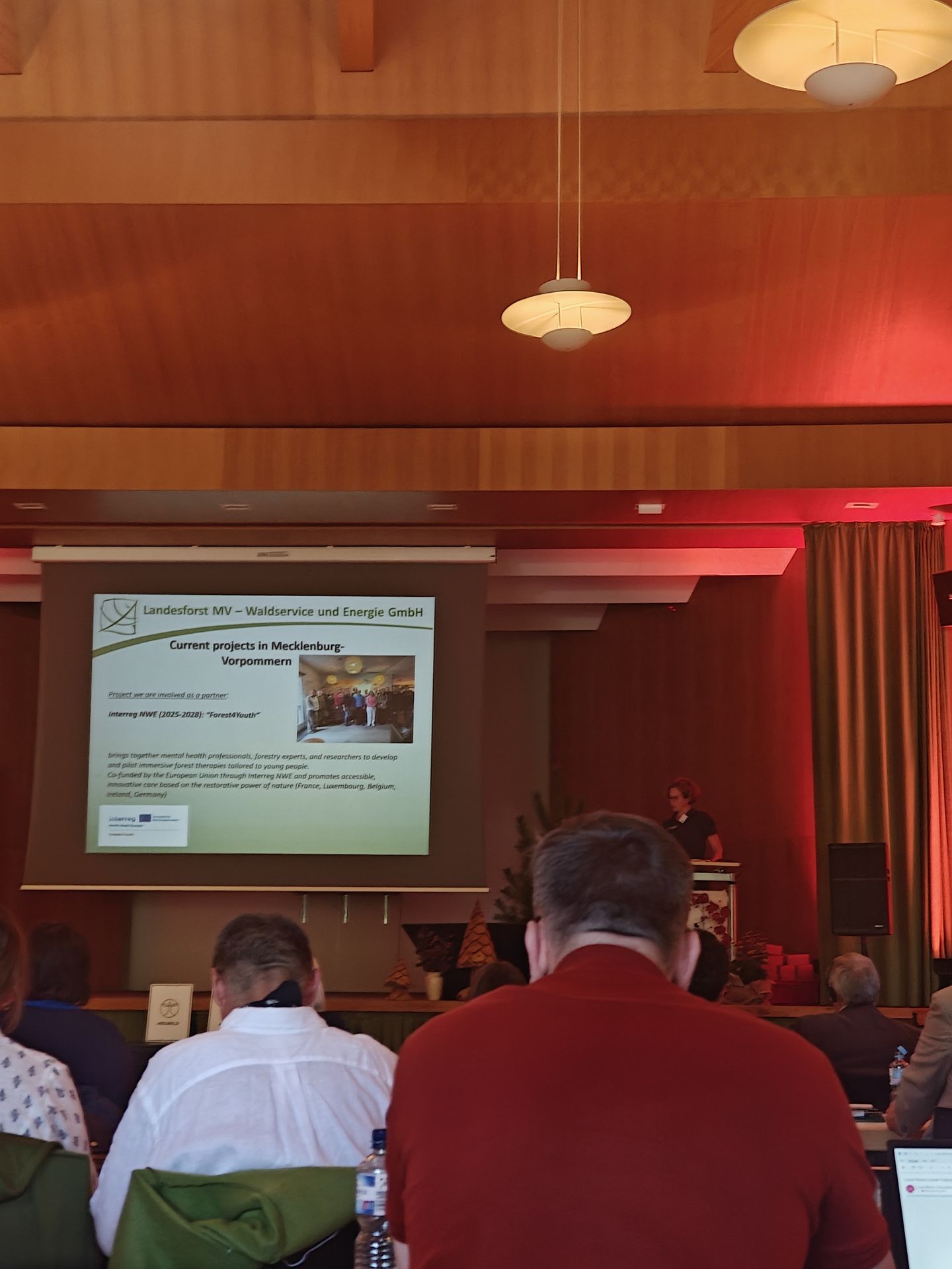 Later that day, partners attended a project presentation by Landesforst Mecklenburg-Vorpommern Waldservice und Energie GmbH, where Tomke de Vries shared insights into the ongoing implementation and evaluation of healing-forest models across the region — offering a tangible bridge between policy, management, and practice.